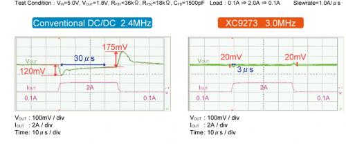 ▲図1 與過去的產(chǎn)品的高速瞬態(tài)響應比較