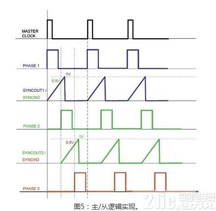 如圖1所示,轉(zhuǎn)換器1是“主”轉(zhuǎn)換器,它為其余的“從”轉(zhuǎn)換器提供設(shè)定頻率。