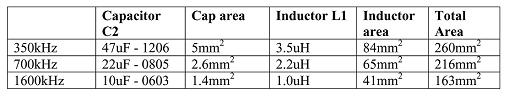 表格3顯示了感應器和電容器的數(shù)值,以及PCB所需板面面積