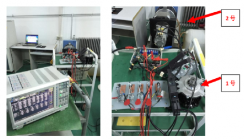 此次測(cè)試的對(duì)象為小型電機(jī)系統(tǒng),系統(tǒng)分為驅(qū)動(dòng)器、電機(jī)平臺(tái)、測(cè)試,3個(gè)部分。驅(qū)動(dòng)器輸出通過電纜連接到電機(jī)平臺(tái),電機(jī)轉(zhuǎn)軸上安裝扭矩傳感器,傳感器所有連接線引到測(cè)試儀器,傳感器輸出信號(hào)接入功率分析儀電機(jī)測(cè)量單元扭矩BNC接口。傳感器輸出100kHz±50kHz脈沖對(duì)應(yīng)0±5Nm扭矩。
