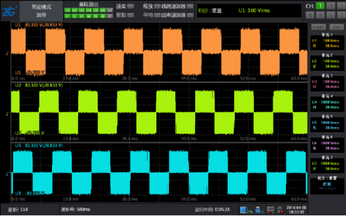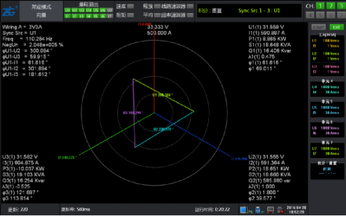 此時(shí)將系統(tǒng)運(yùn)行起來,通過功率分析儀的數(shù)據(jù)和波形再次進(jìn)行驗(yàn)證,電壓波形圖和矢量圖都很完美。