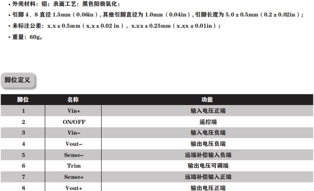 電源類型:八分之一磚模塊電源