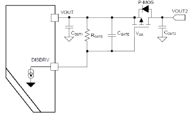 從上圖我們可以看到,所需要的外部器件很少。該芯片還提供一個單獨的 pin 腳 DIS來驅(qū)動負(fù)載輸出端的外部 FET(P-FET),在設(shè)備關(guān)斷或者輸出短路時它能完全斷開輸入與輸出的連接。啟動時,通過內(nèi)部電流源來控制外部 P-FET 開關(guān)。在關(guān)斷或者輸出短路時,將輸出與輸入側(cè)隔離,如下圖: