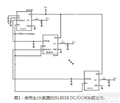 如圖1所示,轉(zhuǎn)換器1是“主”轉(zhuǎn)換器,它為其余的“從”轉(zhuǎn)換器提供設(shè)定頻率。