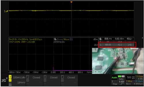 注:通道1信號幅度雖然非常小,但通過FFT分析還是可以定位出600K頻點(diǎn)的干擾。