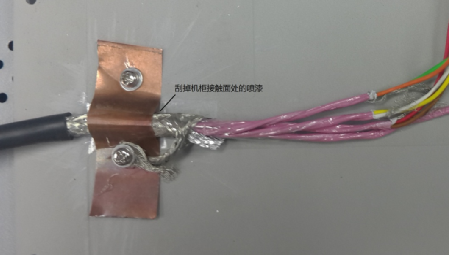 從安全方面考慮,三個(gè)機(jī)柜都必須接大地,強(qiáng)電線路與信號(hào)線分開避免干擾這些都是要遵循的基本原則。實(shí)際機(jī)柜間位置較遠(yuǎn),接地對(duì)于高頻干擾改善不多,只作為安全措施。解決這種問題一般考慮是從干擾源、傳播路徑、敏感設(shè)備三方面著手。驅(qū)動(dòng)器和功率分析儀是成型的設(shè)備,不便于改動(dòng),考慮從傳播路徑入手,使用多芯屏蔽電纜連接扭矩傳感器到測(cè)控柜,傳感器端屏蔽層連接到傳感器外殼,也與電機(jī)平臺(tái)連通,另一側(cè)屏蔽層接到測(cè)控柜機(jī)殼。最初的時(shí)候屏蔽層通過一根較長(zhǎng)的線連接到測(cè)控柜,發(fā)現(xiàn)并沒有改善,最后使用銅片將整根線壓到機(jī)柜,干擾得到很大衰減。